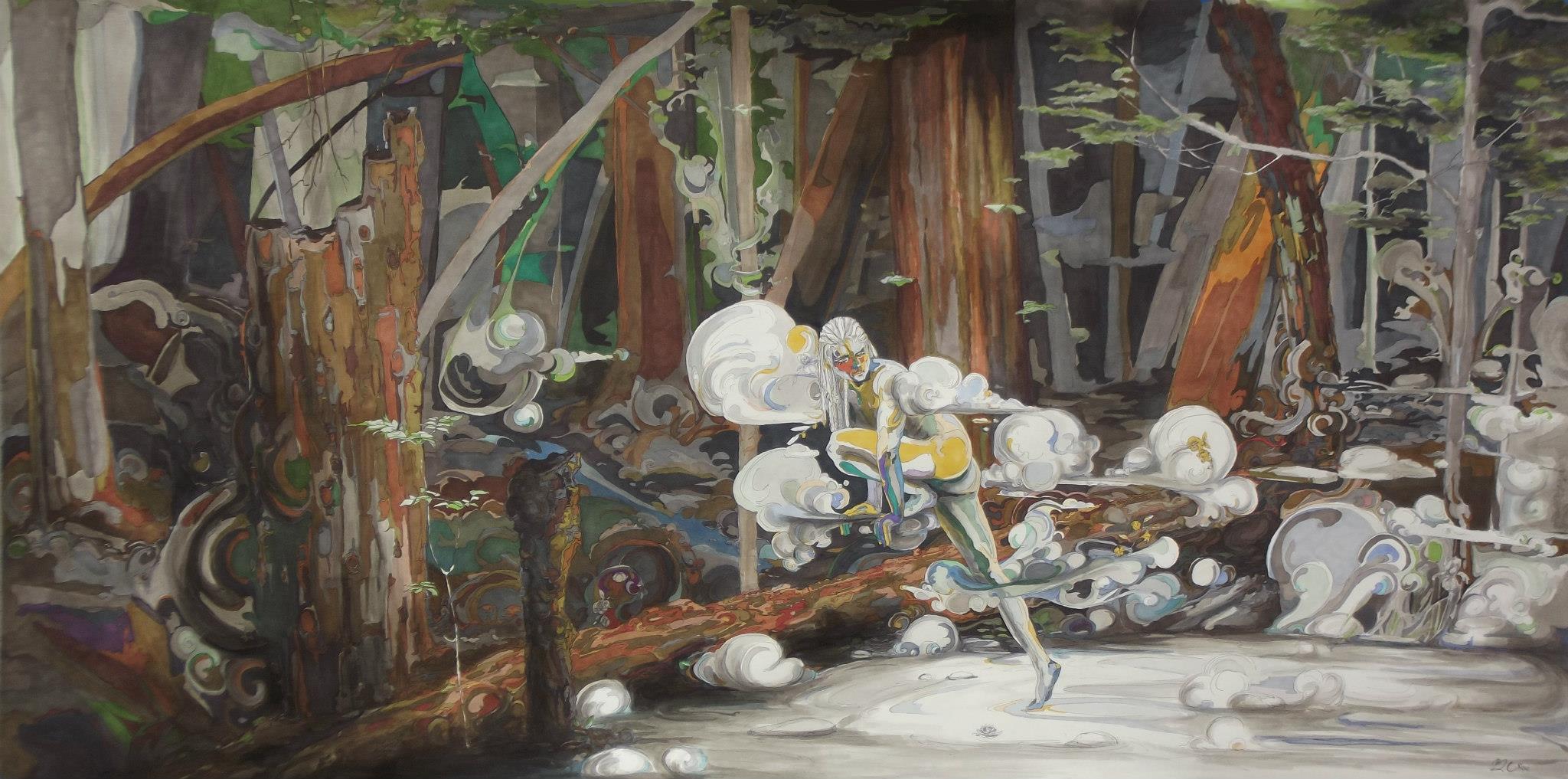 Prismacolor marker, Colored pencil, acrylic paint. 24x30in.